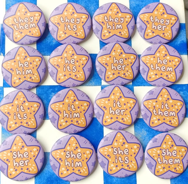 star pronoun pins 🌟 show off your pronouns in the cutest way! 🌈💖 matte finish, metal pin button backing